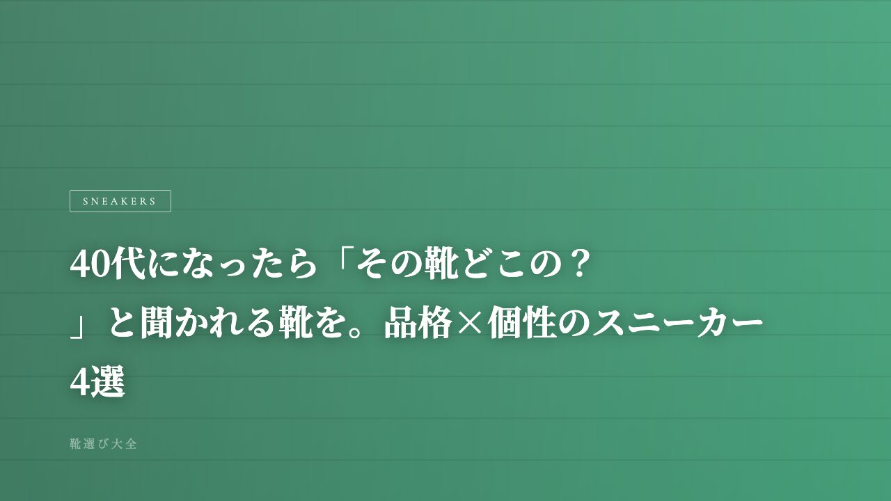 どれも「知っている人が選ぶ靴」であって、「よく見る靴」じゃない。40代のコーデに静かに馴染みながら、「その靴どこの?」と聞かれる一足を4つ紹介します。