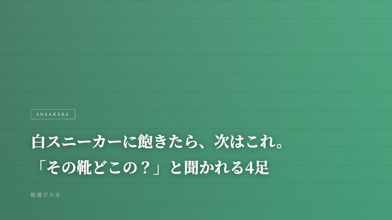 この記事では、白スニーカーの「次の一足」として選びやすい4足を紹介します。突飛なものではなく、白スニーカーを愛用してきた人が自然にステップアップできる靴を厳選しました。